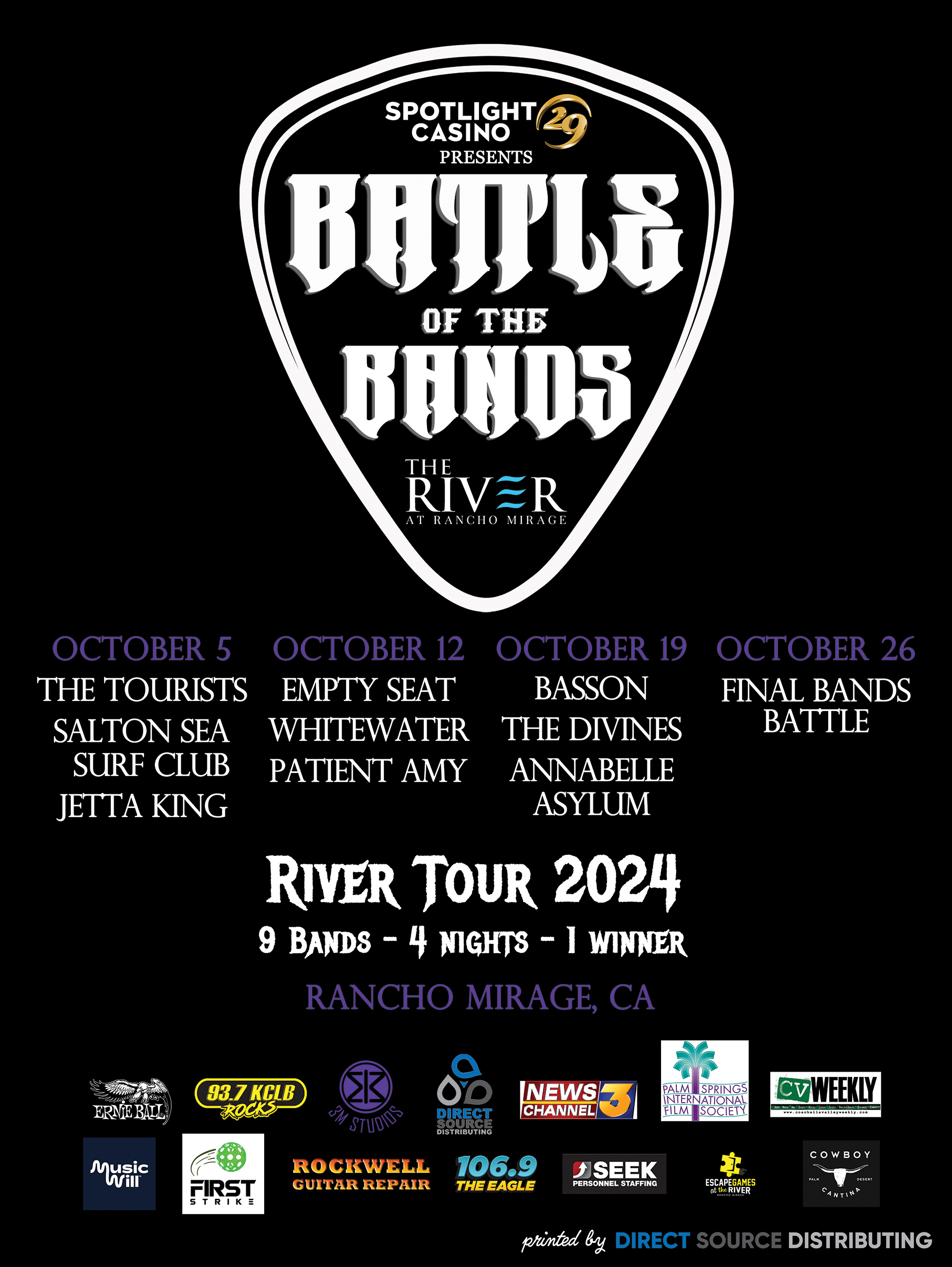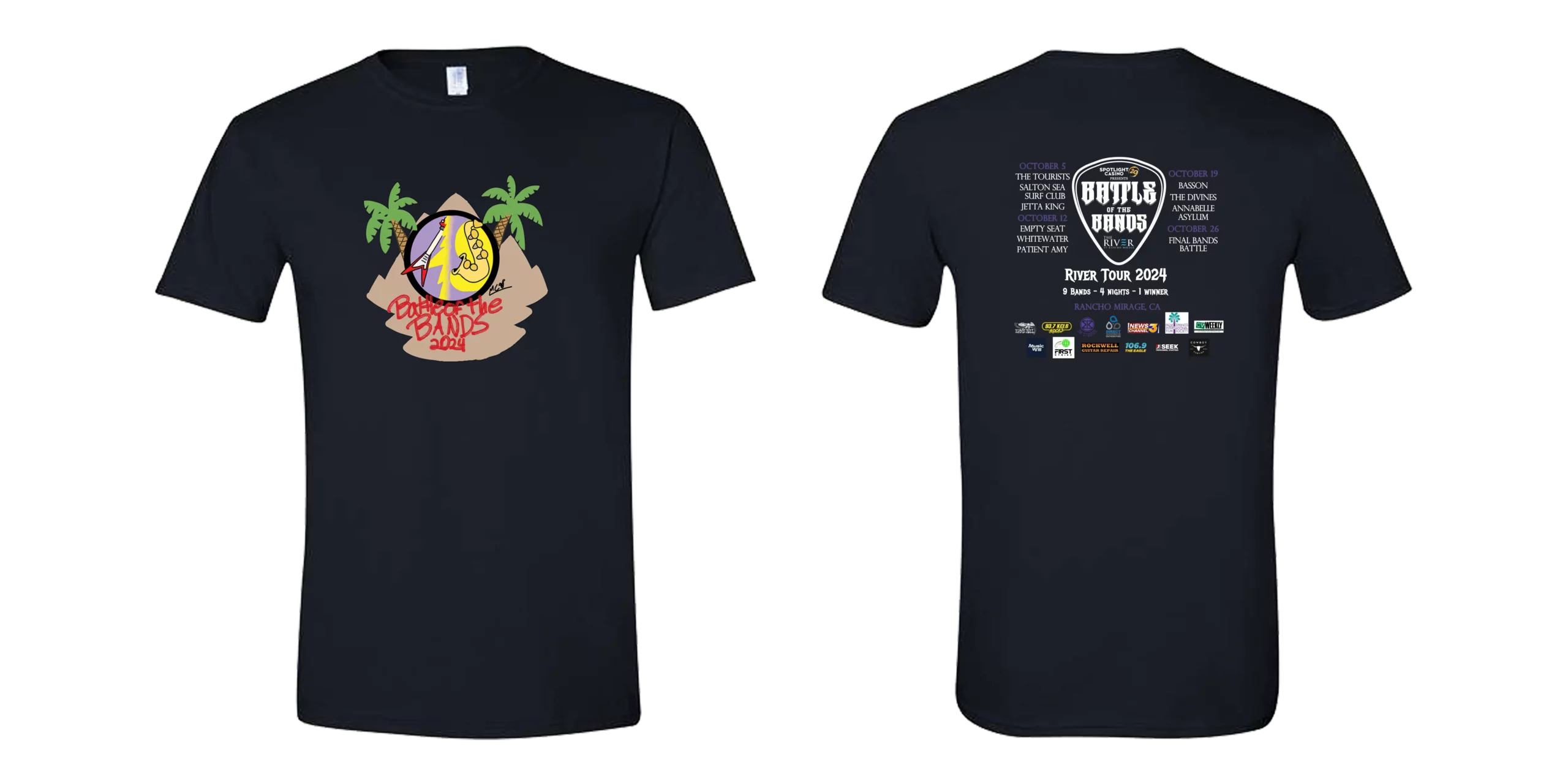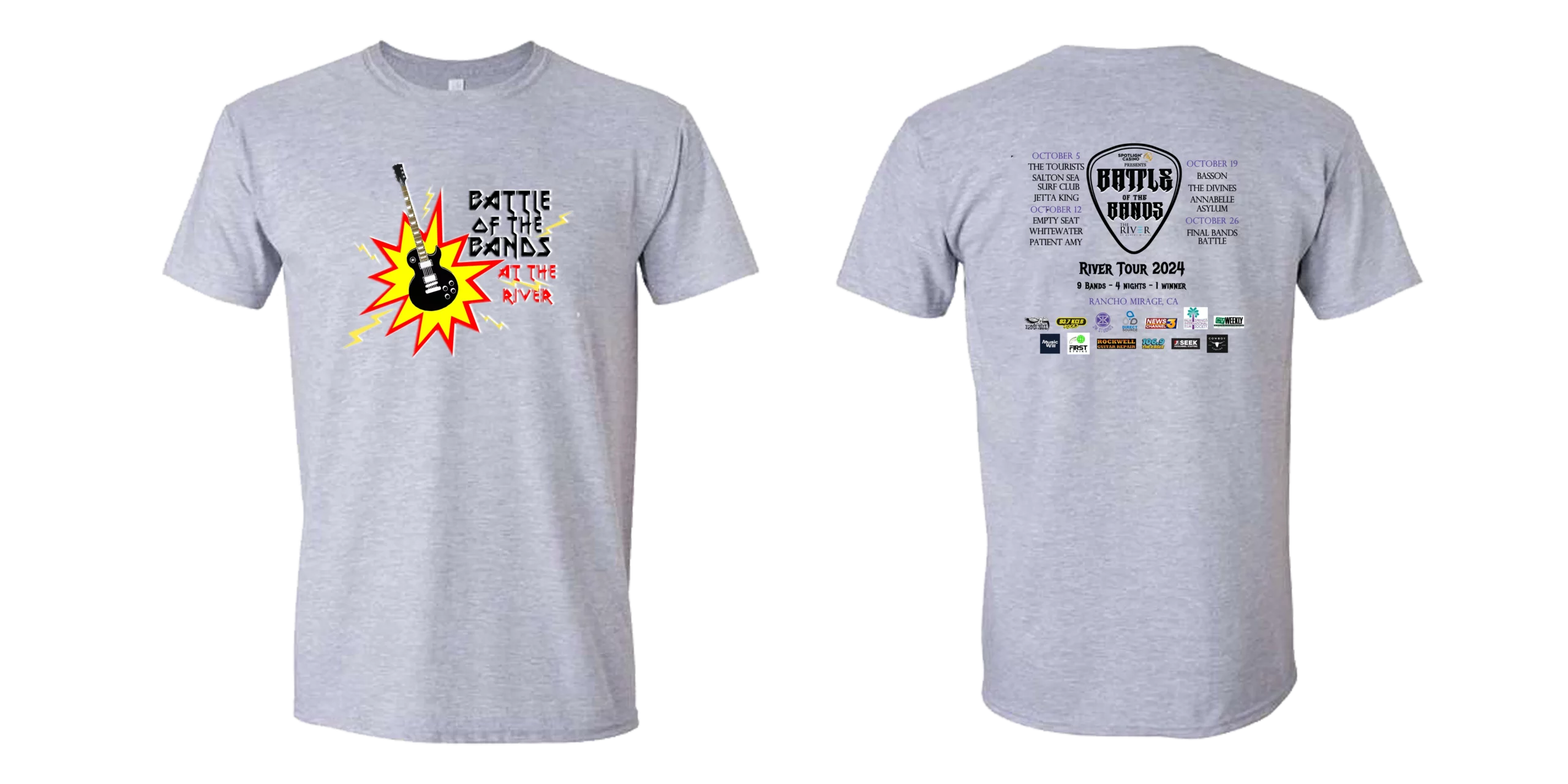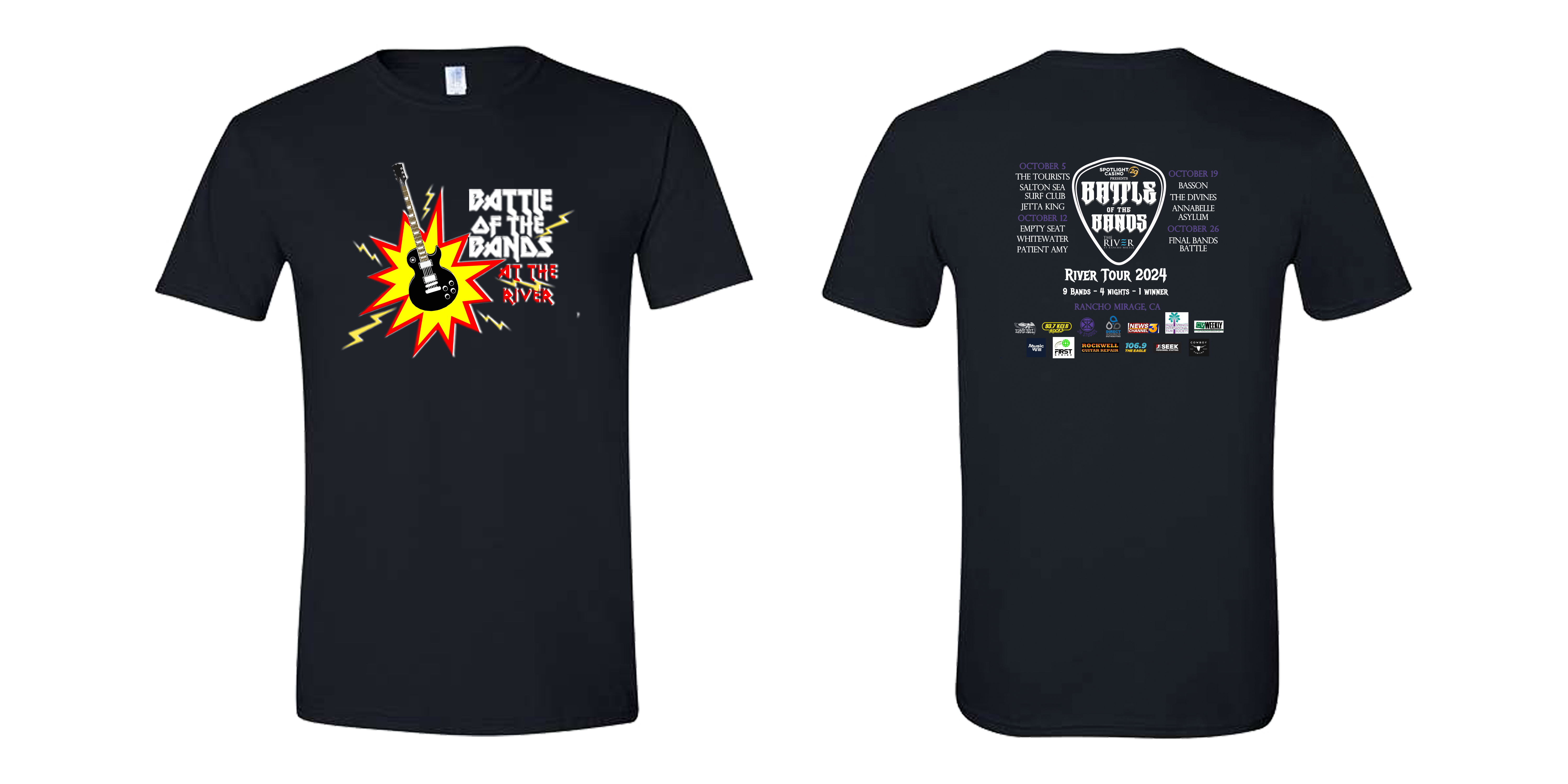 Are you ready to rock and roll at the 1st Annual Battle of the Bands at The River at Rancho Mirage? Get ready to look good all month long rockin’ your hot new threads while dancing to the electrifying ambiance of rock bands from the Coachella Valley jammin’ on the stage. The designs of these tee’s displayed below were carefully curated by artists from local schools in Rancho Mirage. With a perfect blend of original tunes from local musicians, this event will be the most sought after event in the Valley this Fall!